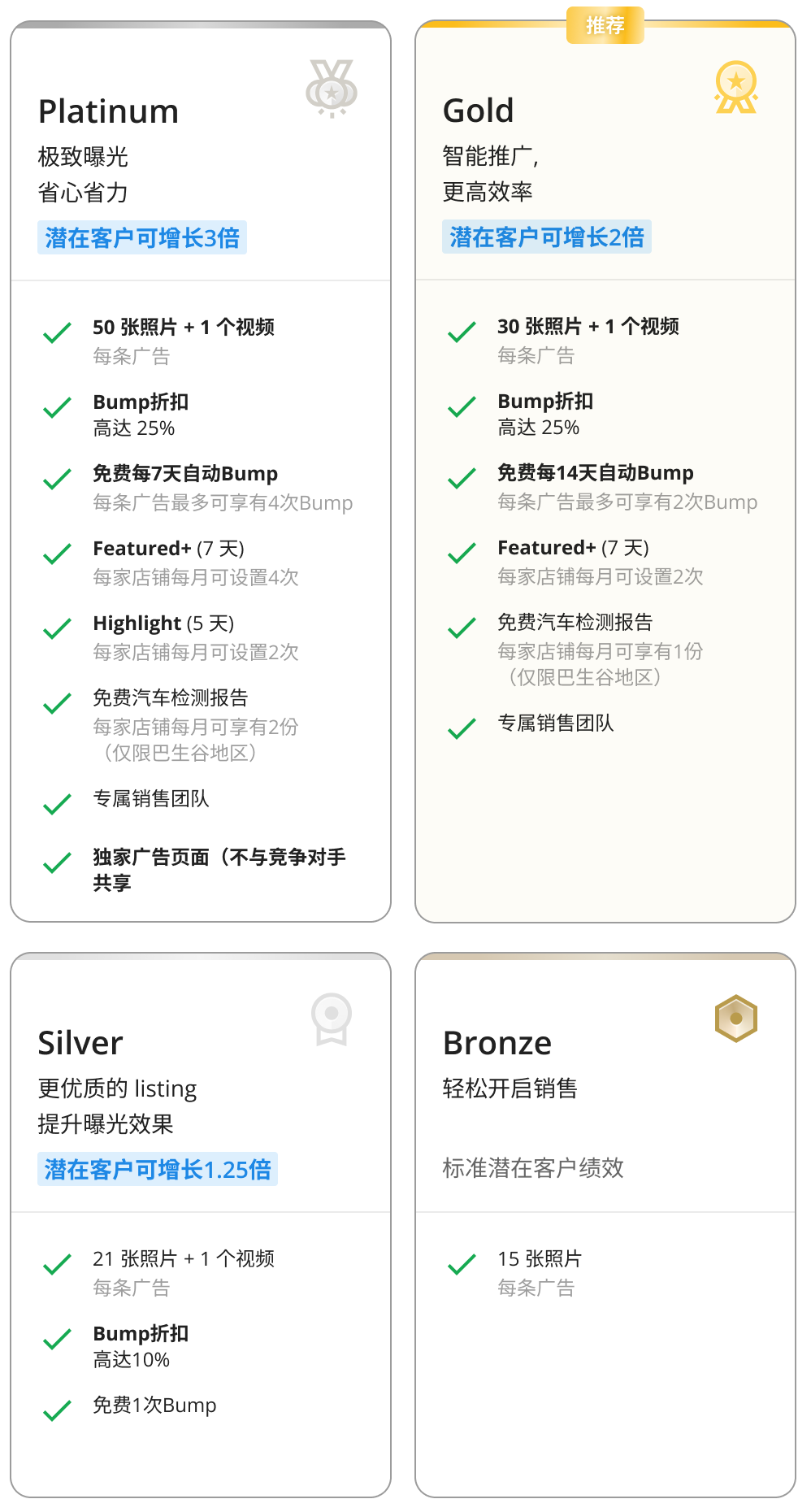 根据我们对成功经销商的经验洞察,我们重新整合了 Mudah Auto 的价值主张,推出全新店铺类型 —— 聚焦您最关心的三大要素:更多潜在客户、更高曝光率,以及更强买家信任。